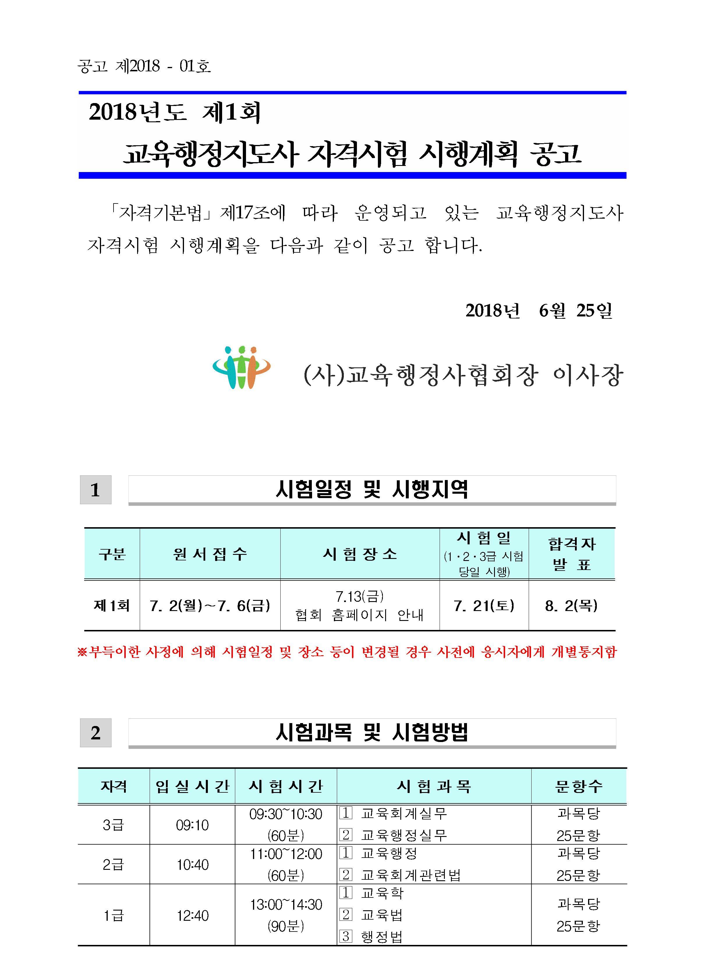 2018³â Á¦1ȸ ±³À°ÇàÁ¤Áöµµ»ç ½ÃÇè °ø°í(¿ø¼Ã·ºÎ)