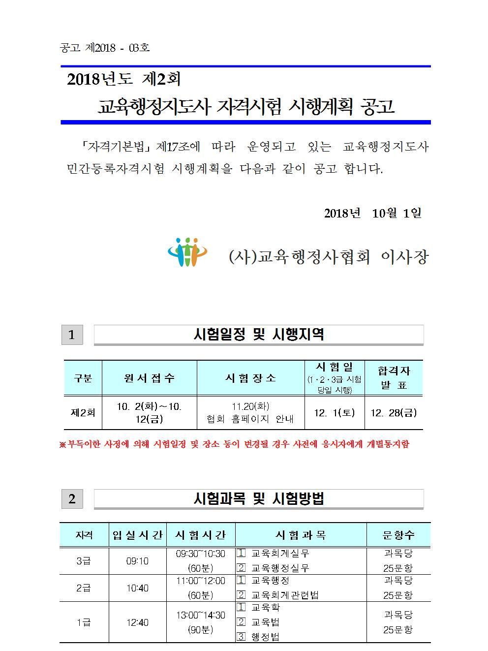 2018³â Á¦2ȸ ±³À°ÇàÁ¤Áöµµ»ç(2±Þ,3±Þ) ½ÃÇè °ø°í(¿ø¼Ã·ºÎ)