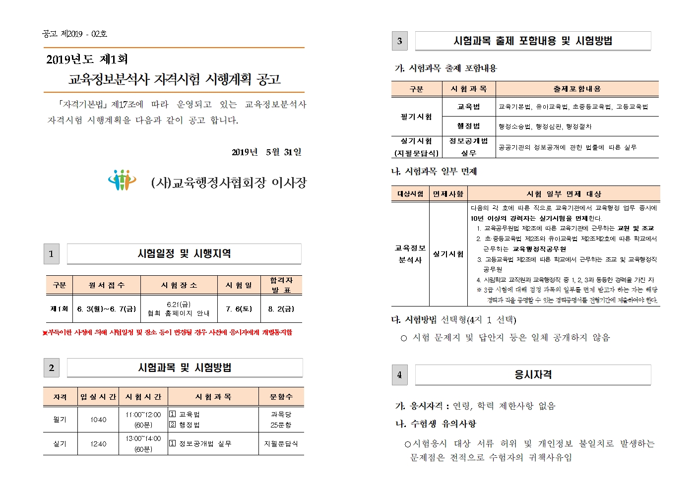 2019³â Á¦1ȸ ±³À°Á¤º¸ºÐ¼®»ç ÀڰݽÃÇè(¿ø¼ÇÏ´Ü÷ºÎ)