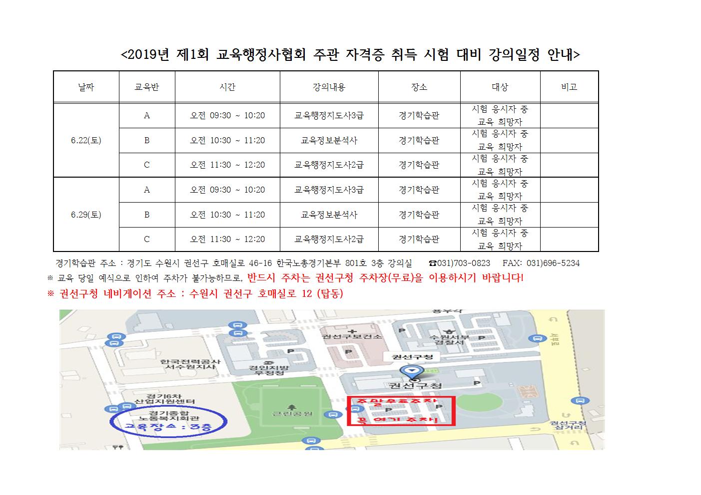 2019³â Á¦1ȸ ±³À°ÇàÁ¤»çÇùȸ ÁÖ°ü ÀÚ°ÝÁõ Ãëµæ ½ÃÇè ´ëºñ °ÀÇÀÏÁ¤ ¾È³»