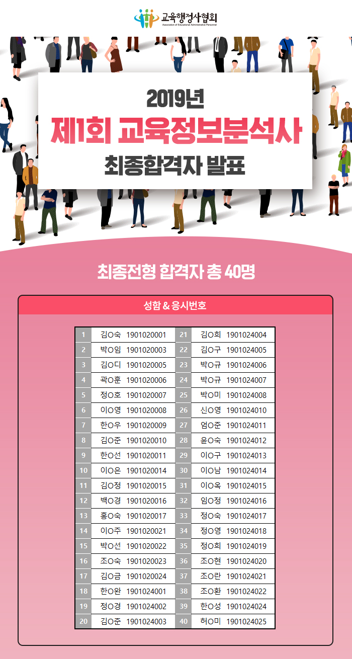 2019³â Á¦1ȸ ±³À°Á¤º¸ºÐ¼®»ç ÇÕ°ÝÀÚ ¹ßÇ¥(ÀÚ°ÝÁõ ¹ß±Þ ½Åû¼ ÷ºÎ)