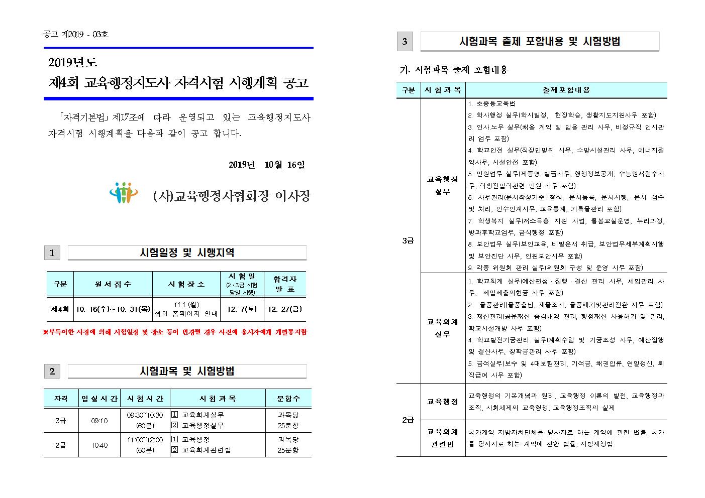 2019³â Á¦4ȸ ±³À°ÇàÁ¤Áöµµ»ç(2±Þ,3±Þ) ÀڰݽÃÇè °ø°í(¿ø¼ ÇÏ´Ü÷ºÎ)