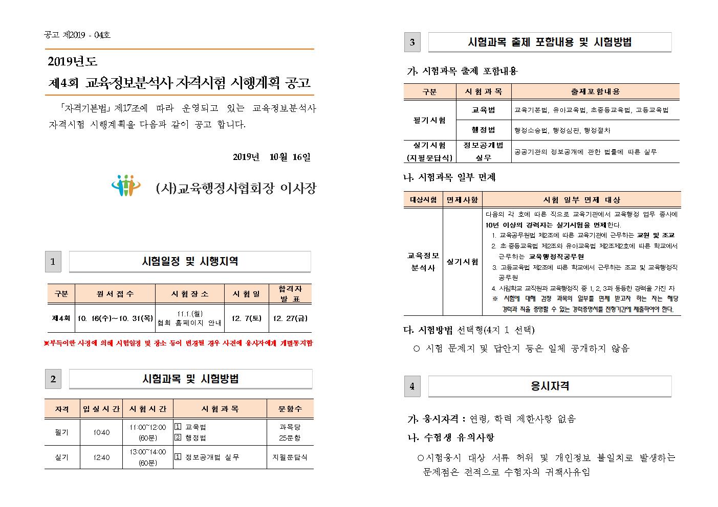 2019³â Á¦4ȸ ±³À°Á¤º¸ºÐ¼®»ç ÀڰݽÃÇè °ø°í(¿ø¼ ÇÏ´Ü÷ºÎ)