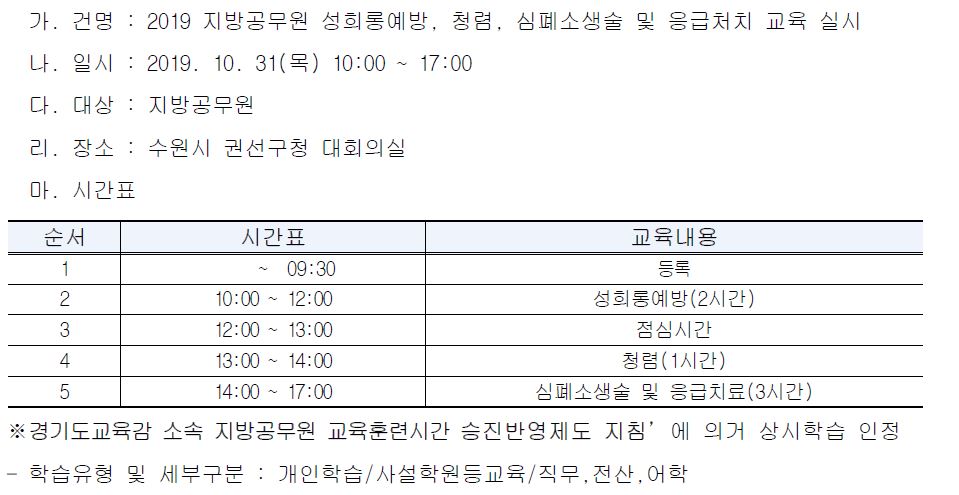 2019³â Áö¹æ°ø¹«¿ø ¼ºÈñ·Õ¿¹¹æÃ»·Å½ÉÆó¼Ò»ý¼ú ¹× ÀÀ±Þóġ ±³À° ½Åû ¾È³»(2019.10.25).hwp.pdf