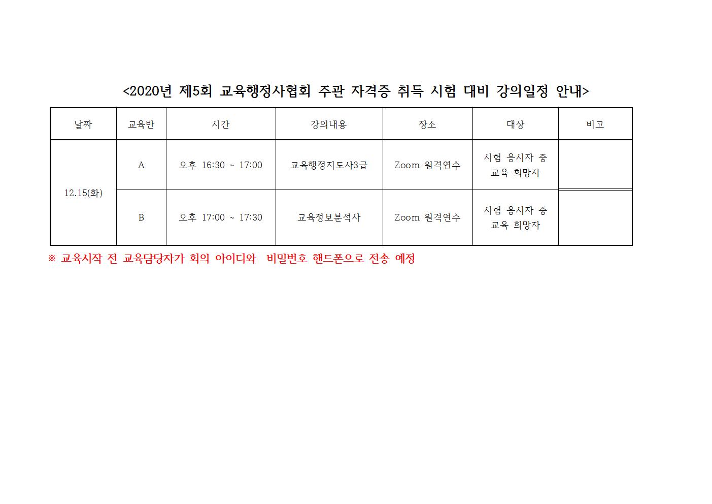 (Ư°ÀÏÁ¤)2020³â Á¦5ȸ ±³À°ÇàÁ¤»çÇùȸ ÁÖ°ü ÀÚ°ÝÁõ Ãëµæ ½ÃÇè ´ëºñ °ÀÇÀÏÁ¤ ¾È³»
