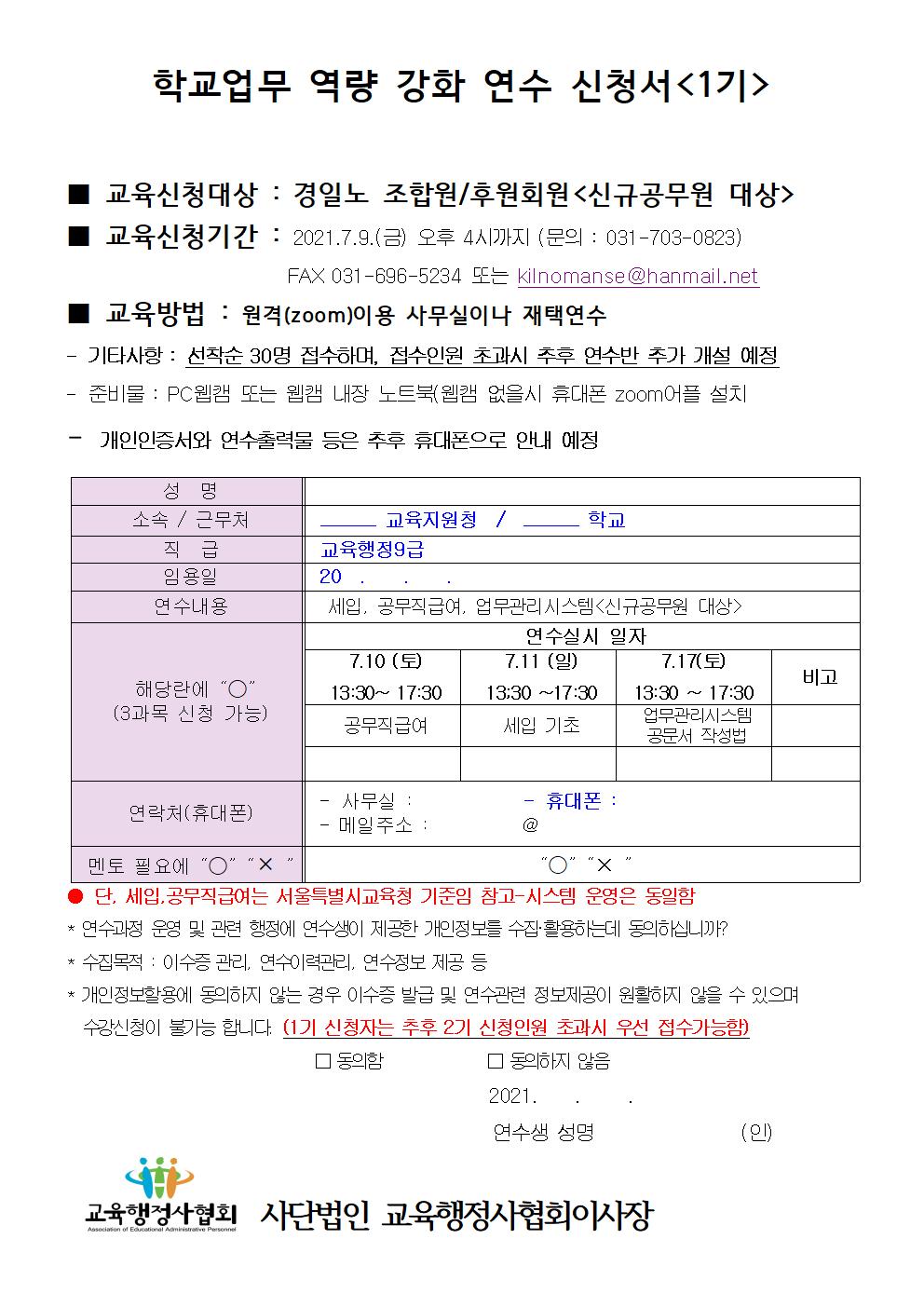 <½Åû¸¶°¨-7.9>Çб³¾÷¹« ¿ª·® °È ¿¬¼ö ¾È³»- ±³À°ÇàÁ¤°ø¹«¿ø Á÷¹«±³À°(±Þ¿©,¼¼ÀÔ,°ø¹®¼ÀÛ¼º ¹× ¾÷¹«°ü¸®½Ã½ºÅÛ) ½Åû ¾È³»